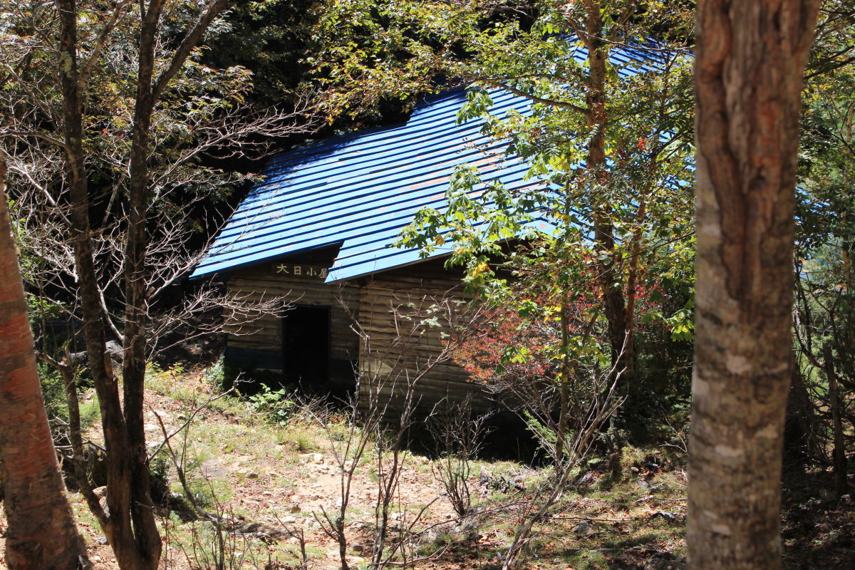 大日小屋。無人で、素泊まりのみだけれど、内装を見てテントのほうがいいやと思う。水場があるのが嬉しい