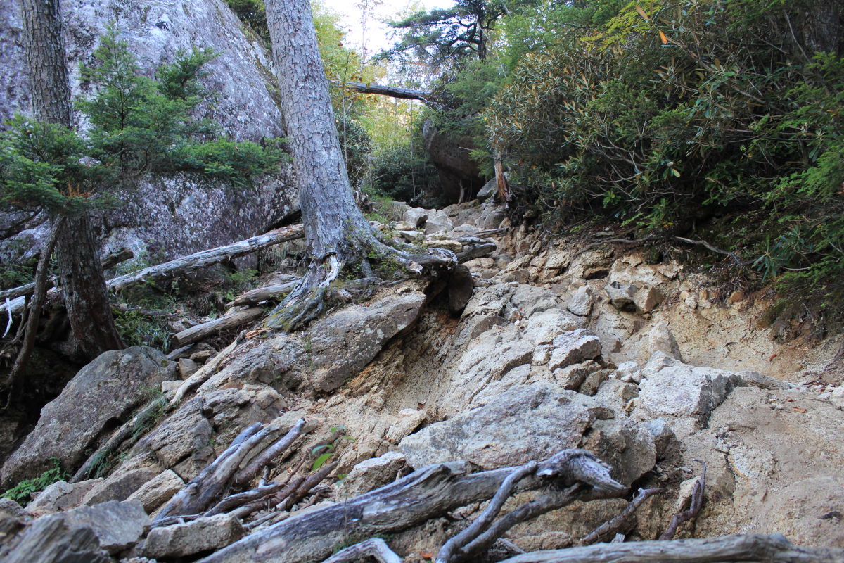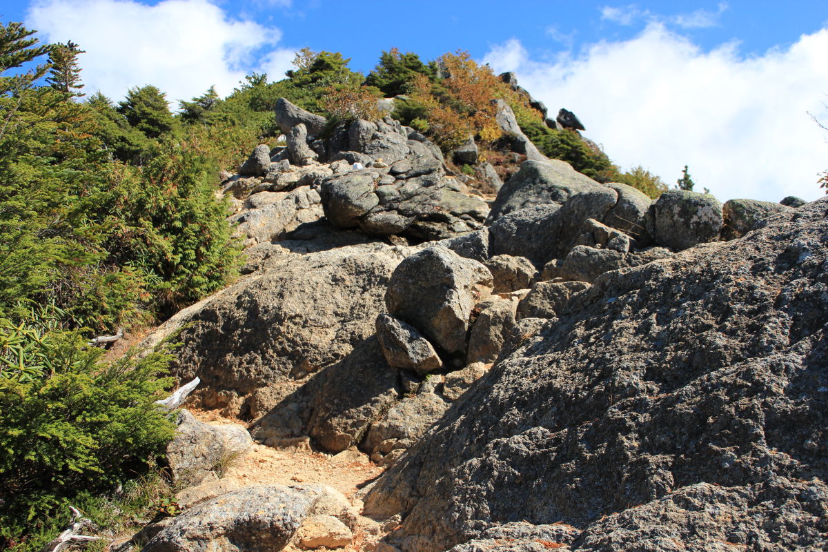 岩混じりで歩きにくい。険しい。しかしそのぶん楽しい登り
