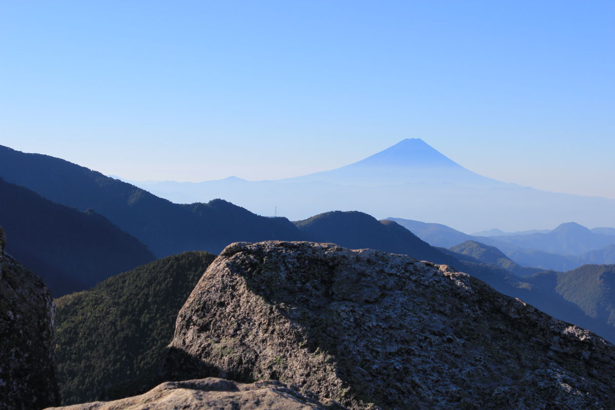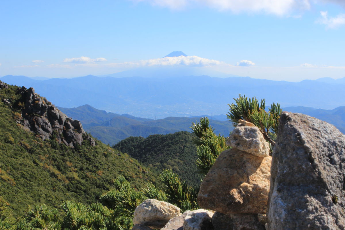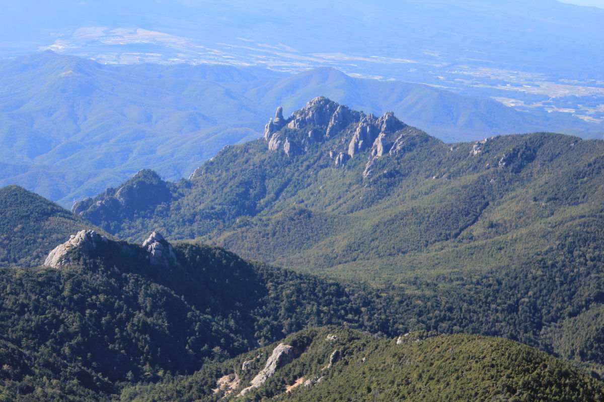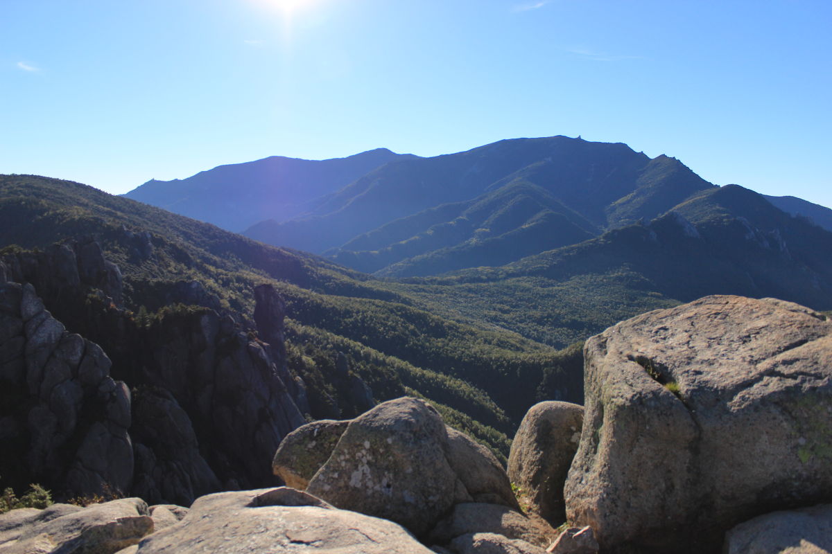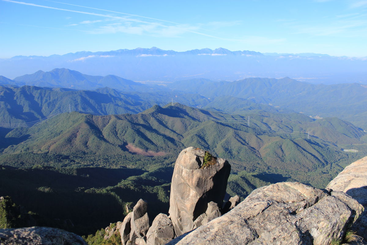 金峰山から瑞牆山。フリークライミングのメッカと名高い小川山も見えた