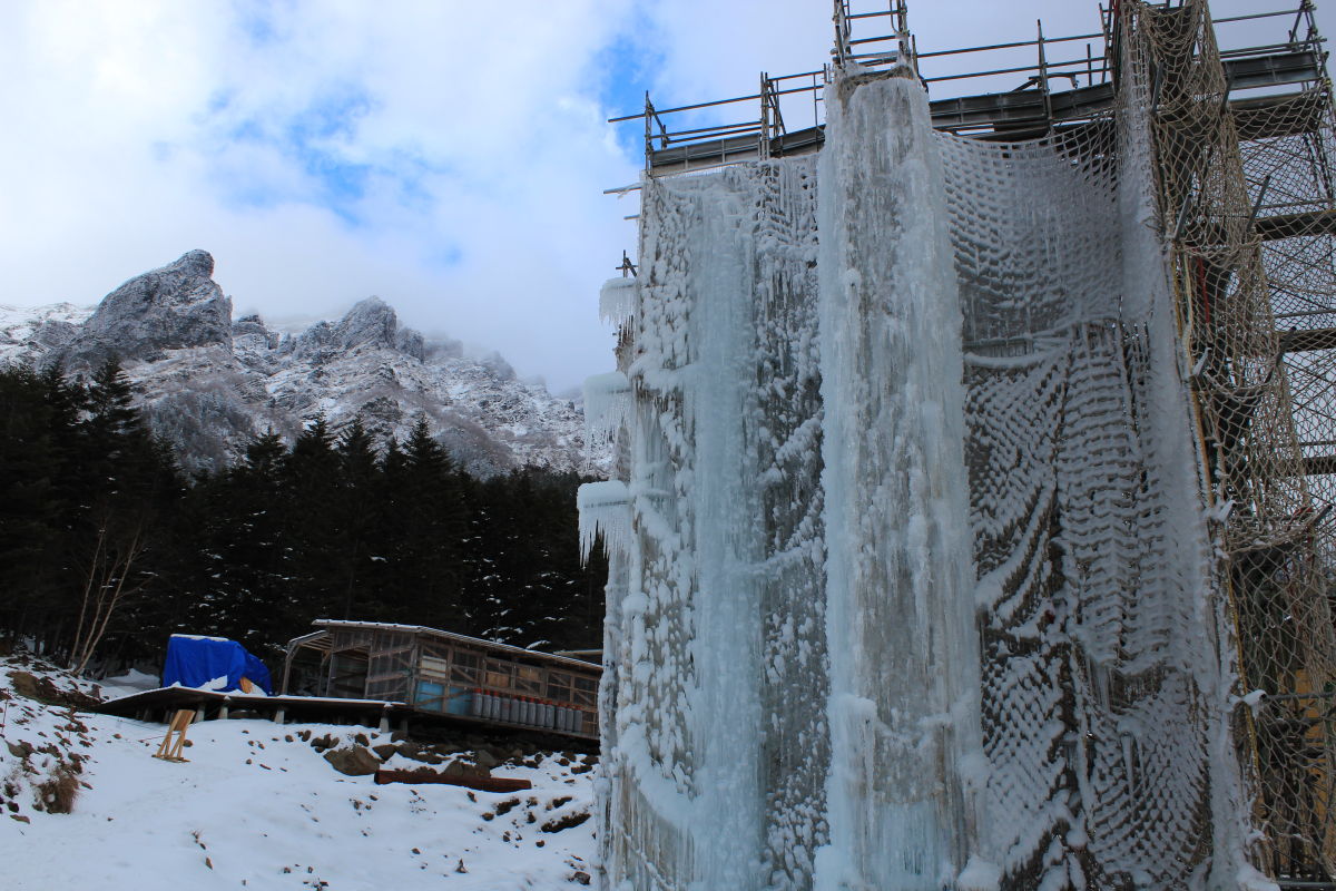 有名なアイスキャンディー。放水中でした。山小屋でこれだけの施設はすげえな……