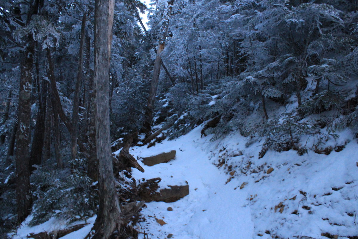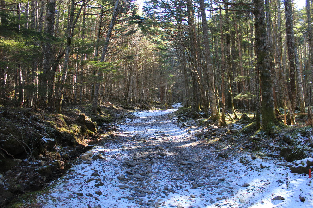 危険な箇所はないが、もう少し積もればアイゼンがいるのだろう。トレースはしっかりしていて、迷うことはない。ちょっと変なところにトレースつけてしまったのは内緒。