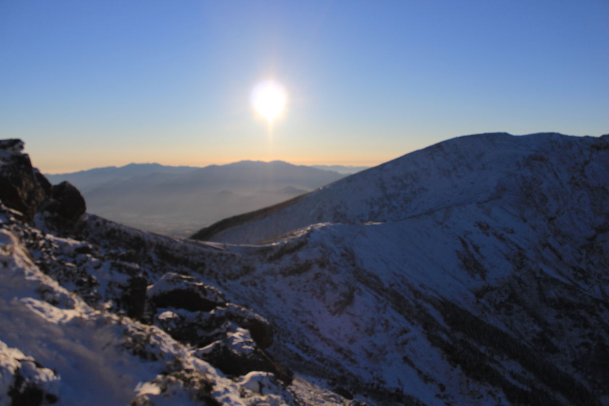 稜線上に陽が射し込む。夢中でシャッターを押す。