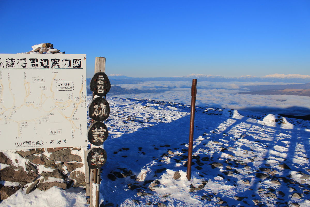 私にはちょっと勿体ないくらいの天気で、無駄にテンションが上がりながら、硫黄岳のだだっ広い山頂に到着。風すらなく、陽射しで下界より暖かいくらい。