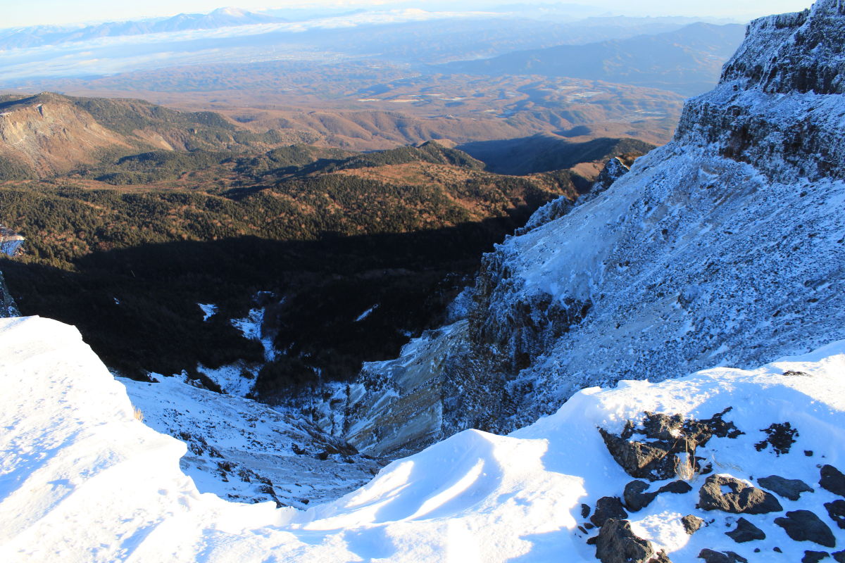 硫黄岳の火口。ぞっとするくらいでかくて落差がある